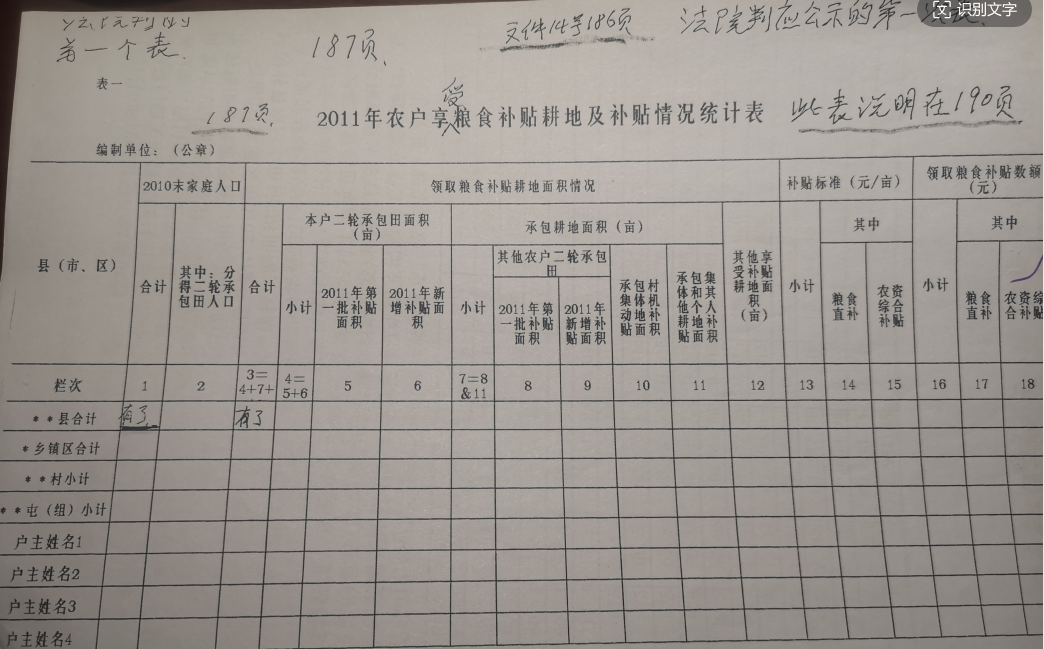 此后数年,围绕法院判决执行一事,80来岁的村民马占又在各部门间折腾数年,其中酸辣苦甜,可谓老泪横流:据不完全统计,马占有先后承包959亩耕地,从2006年到2023年间的粮食补贴款未补偿到位;他一直要求乡政府公示判决义务。