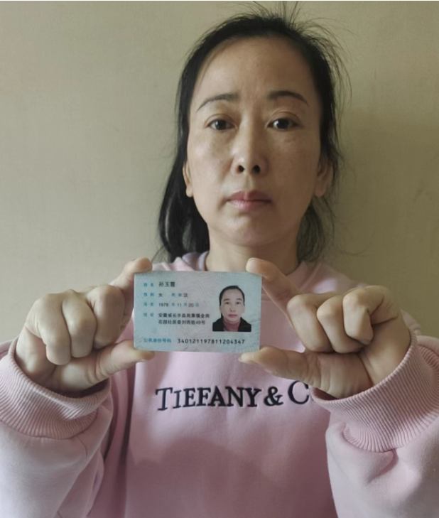 求助人:孙玉霞,女,汉族,住安微省长丰县岗集镇金岗花园社居委刘西组49号,居民身份证号码:340121197811204347,电话:19856507337。