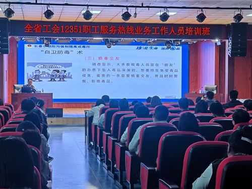 近年来,毒品问题已经成为影响职工健康和社会稳定的潜在威胁之一,强化职工群体禁毒宣传教育显得尤为重要。为扫除禁毒宣传盲区,提升广大工会服务热线员工的识毒、防毒、拒毒意识。5月14日,省总工会组织的“全省工会12351职工服务热线业务工作人员培训班”在长春市朝阳沟禁毒教育基地暨长春市青少年法治教育基地礼堂举行,禁毒教育成为培训的一项重要内容。