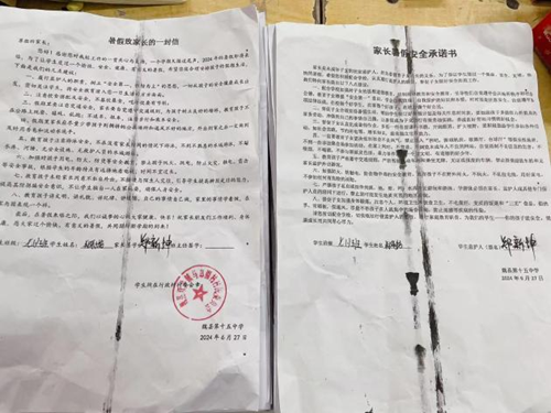 二、收发宣传材料:为了保证孩子度过一个安全、健康、愉快的暑假,魏县十五中学向学生和家长发放并签订暑假安全“三书”,以增强家长和学生的安全意识。