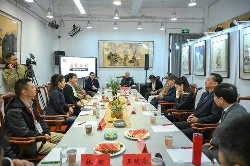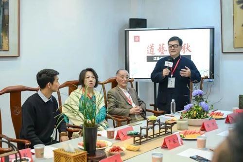 开幕式后,《江逸子先生艺术座谈会》在后堂会议室举行,由著名学者唐瑜凌老师主持,江逸子先生就艺术创作与各位嘉宾进行了探讨。