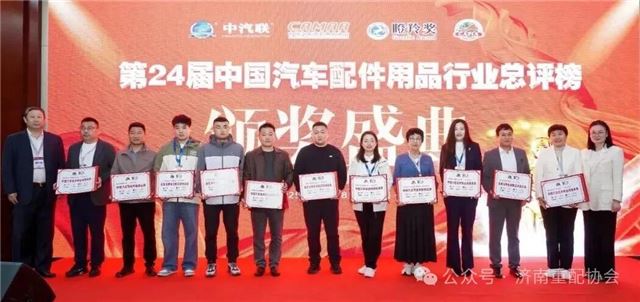 行业专家还围绕“汽配经销商服务重塑”“金融信用险破局坏账难题”“社保新规下用工合规”等企业关切话题展开深度分享,济南市天桥区重汽配件协会党支部书记马天坤也带来“汽车后市场在济南的发展优势分析”,为区域合作提供参考。此外,峰会还设置《2025中国汽车后市场领军人物》、《第24届中国汽车配件用品行业总评榜》两大颁奖环节,协会会长杜兆伟、党支部书记刘昌勇受邀担任颁奖嘉宾,与行业大咖共同见证优秀企业与个人的风采,为行业交流与资源对接再添助力。