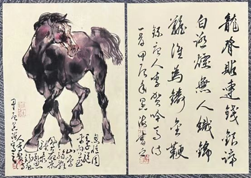 徐悲鸿之后,则有韦江帆、刘勃舒继承徐悲鸿画马,把徐悲鸿画法中的某种因素放大,创造出更为大写意的画马之法,可以说用的是徐悲鸿画法中的减法,而王阔海先生用的则是除法和乘法,除去西画的光影,再乘以中国画的笔墨。